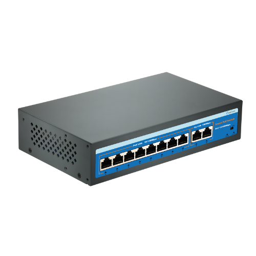 The EV-F0820FBL-A is a specialized 8-port PoE+ switch engineered for extended distance network deployments with advanced security features. The EV-F0820FBL-A delivers exceptional performance with 8×100Mbps PoE+ ports capable of supporting up to 250 meters of transmission distance, making it ideal for large-area installations. This switch features two 100Mbps uplink ports and incorporates PoE port isolated VLAN functionality for enhanced network security and traffic management. With a robust 120W total power budget, IEEE 802.3af/at compliance, and 30W maximum power per port, the EV-F0820FBL-A ensures reliable operation for IP cameras, access points, and other PoE devices in demanding environments. The switch’s extended transmission capability and security features make it perfect for surveillance systems.