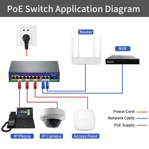 The EV-G0821GB-C is a high-performance 8-port Gigabit PoE+ switch designed for robust network infrastructure and power-over-Ethernet applications. The EV-G0821GB-C delivers exceptional flexibility with 8×10/100/1000Mbps PoE+ RJ45 ports, each capable of providing up to 30W of power, with a total power budget of 120W to support multiple high-power devices simultaneously. This advanced switch features two 10/100/1000Mbps RJ45 uplink ports and one 1000Mbps SFP uplink port for scalable network expansion and fiber connectivity options. With support for 250-meter long-distance transmission, VLAN functionality, and IEEE 802.3af/at standards, the EV-G0821GB-C is ideal for IP surveillance systems, VoIP phone networks, wireless access point deployments, and business networks requiring reliable power and data transmission over single cables.